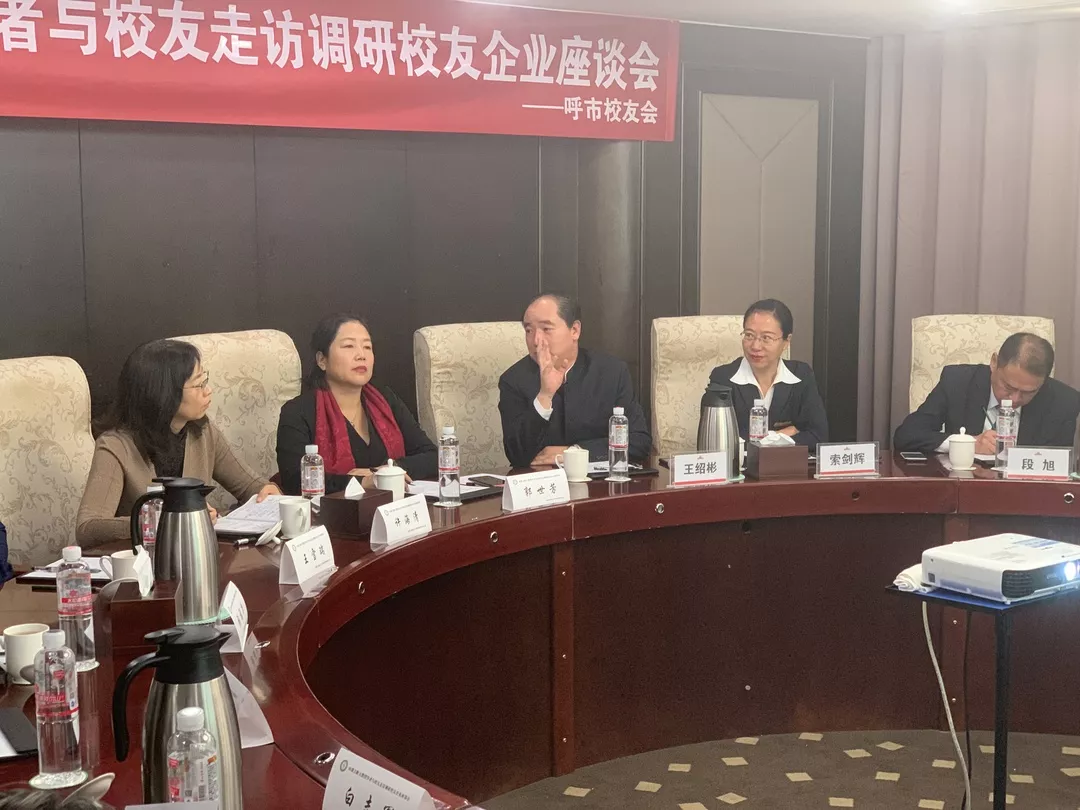 2019年11月13日,内蒙古财经大学教授、学者与校友走访调研校友企业,来到内蒙古宾悦大酒店并举行了座谈会。